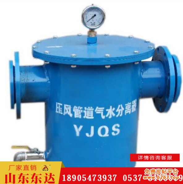 YJQS压风管道气水分离过滤器以下简称(气水分离器)适用于矿井压风管道气、水、杂质分离、去除压缩空气系统中夹带的液滴, 分离气体中的固体颗粒、 各种气体的气液分离 。 有效分离压风管道内的水分、杂质,净化气体。与矿井压风自救装置配合使用,有效提供更纯净的压风,提高井下其它压风风动工具的使用寿命 。 产品上安装有压力表, 可实时了解管道内的压力 。