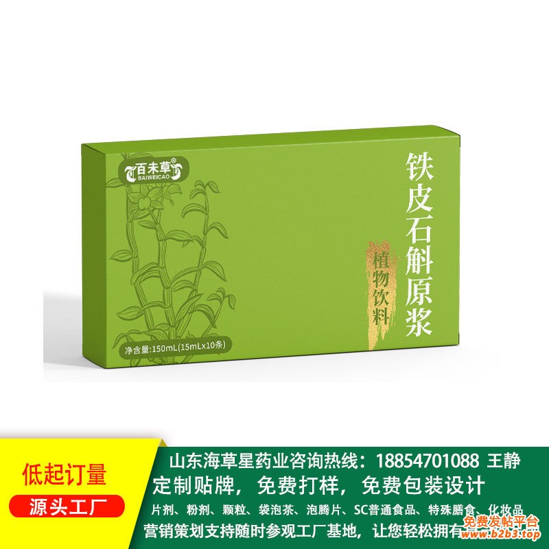 铁皮石斛原浆植物饮料产品研发、打样、免费包装设计