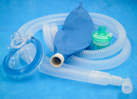 3、将一次性使用麻醉呼吸管路的一段连接于麻醉机或呼吸机上,另一端通过热湿交换器连接着麻醉面罩或者雾化器上,为人体建立一个气体通道。