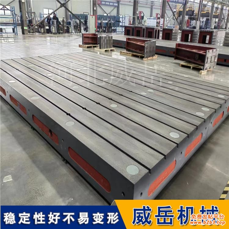 筋板布局:采用“十字筋板+箱型主体”设计,筋板厚度12-15mm,间距200-250mm,形成密集支撑网,比平板结构抗扭刚度提升40%,2000×3000mm底座承载50kN时挠度≤0.02mm;