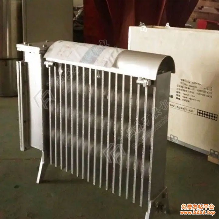 RB-2000/127(A)煤矿用隔爆兼增安型电热取暖器由散热器、电源引入腔、接线室和防尘罩组成。散热器内安装有4支加热元件;接线室内串接有温控器,并有电源母线供电热元件连线;接线室将127V电源从配套设备经引线装置接入,并有接线柱通往接线室;防尘罩用来防止灰尘堆积到散热器上。温度采用温控器和温度保险丝双重控制,达到120℃时,温度保险丝熔断断电。Kuangan002