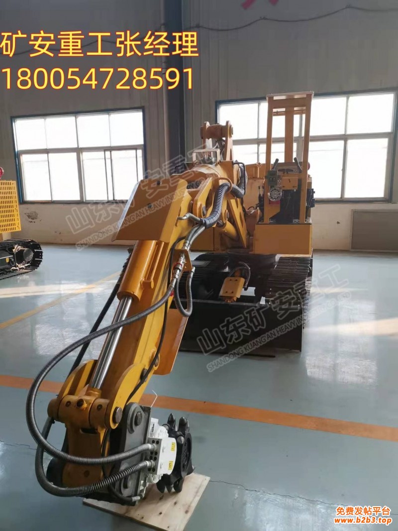 □可以根据巷道大小变化,调节工作臂的高低,避免触碰锚杆,锚索,巷顶板,从而使挖掘机能在不同高度的断面内灵活作业;