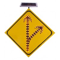 道路施工指引标志牌 车道数变少标志 太阳能发光警示牌价格